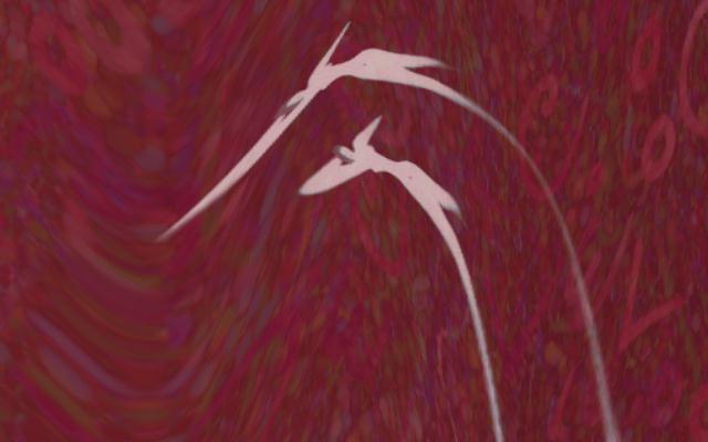 この刺激的な遊びを組織的な活動とするために、1992年の4月、私は中村にある創作の方法を提案をした。まずAがきっかけになるCG作品を完成させ、それをBに電子メールで送る。Bは、Aの手元の作品と完全に同じディジタル画像のコピーを受け取る。Bはそのデータをベースに、一部を加工したり、引用したりして、B自身の作品を完成させ、再びAに送り返す。このやりとりを繰り返すことによって、絵巻物のような作品の鎖を作れるはずだ。私はこの方法を、中世に流行した和歌の集団創作ゲームである連歌の発音に倣って、連画と名付けた。RENと発音する漢字 |