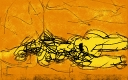 連歌は14〜5世紀に大流行し、しだいに形式化し衰退していったが、俳諧の連歌(いわゆる連句)として息をふきかえし、17世紀に松尾芭蕉によって高い完成の域に達した。芭蕉は集団創作である連歌のコンダクターとしても、また発句(いわゆる俳句)を詠むソリストとしても高く評価されているが、芭蕉自身はつぎのような感想をもらしていたということが師弟の記述によって明らかになっている。 「自分は、発句の作者としての評価が高いが、自分の創作活動の中心になるのは連歌なのだ」 このことは、当時の人々にとっても意外だったようだ。19世紀の歌人、正岡子規は、芭蕉の連歌は文学ではないとまで言い切っている。芭蕉の文学は、ソリストとして作られた俳句だけで十分足りるというのだ。 そのように連歌は、芭蕉の時代から個人の創作より一段低く見られる傾向にあった。それは、芸術的な表現は作者の孤独なモノローグでなければならないという通念のためだと思われる。作者は侵すことのできない孤高の場所にいて、彼にとって他者の力を借りることは、彼の個性を薄めることであると、誰もが少なからず思っている。 一回目の連画セッションで、われわれもまた「作品は作者の所有物である」という思考からなかなか自由になれなかった。1992年4月の約一か月間に創られた三往復六作品を振り返ってみると、われわれは相手の作品から情報を削除することに躊躇し、しだいに情報が蓄積し飽和していくのがよくわかる。 |